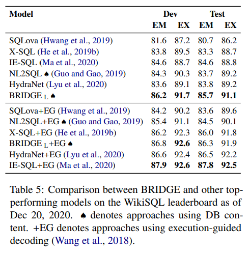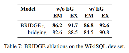 - Figure 3에서 보듯이, SQL에서 숫자가 없는 비율은 Spider=69.2%, WikiSQL=23.2% 이기 때문에 단어와 매칭되는 bridging 방법은 매우 유용하다고 주장